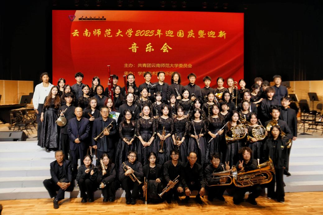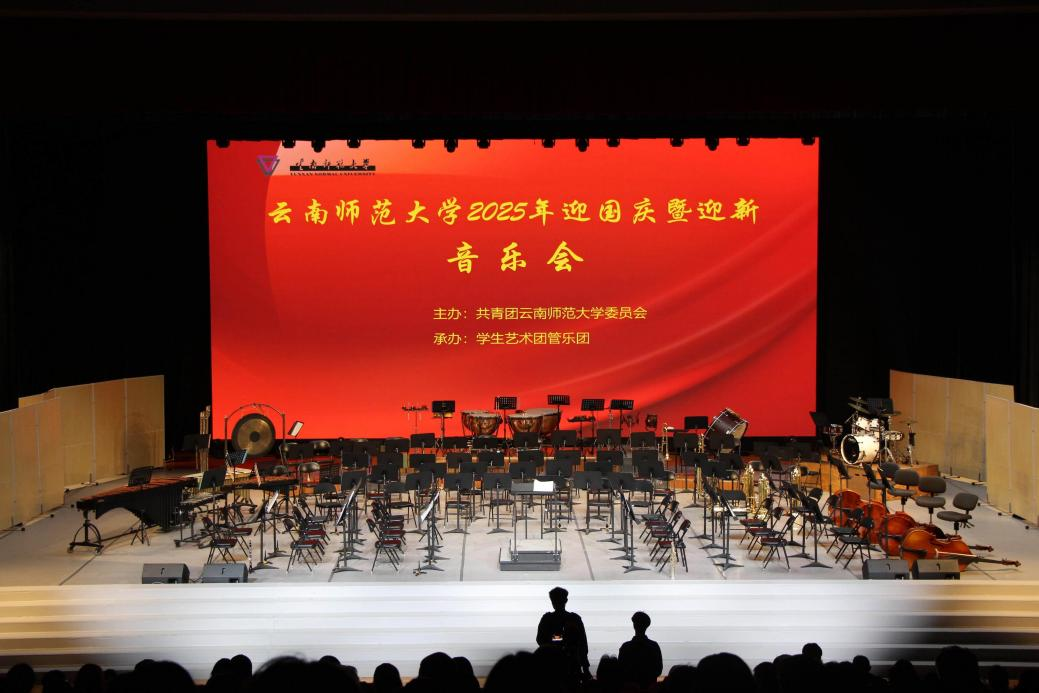 在中华人民共和国成立76周年之际,为弘扬爱国主义精神,传承优秀传统文化,2025年9月30日晚,由校团委主办、校学生艺术团管乐团承办的“迎国庆暨迎新”音乐会在呈贡校区东区学生实训中心一楼多功能厅精彩上演。昆明市滇池乐团受邀参加本次音乐会演奏。