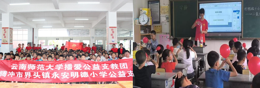 云南师范大学播爱公益支教团坚守十五载,今年再度深入磨憨、富宁、广南、腾冲四地,用爱播撒教育的种子。团队采用“线上+线下”双线支教的模式,常规课堂巩固教学根基,助力乡村儿童夯实学业基础。此外,团队充分利用第二课堂拓展视野的能效,发挥“师范生+专业”的优势,引进艺术启蒙、科学实验、心理健康等特色课程,激发学生创新思维,促进全面发展。