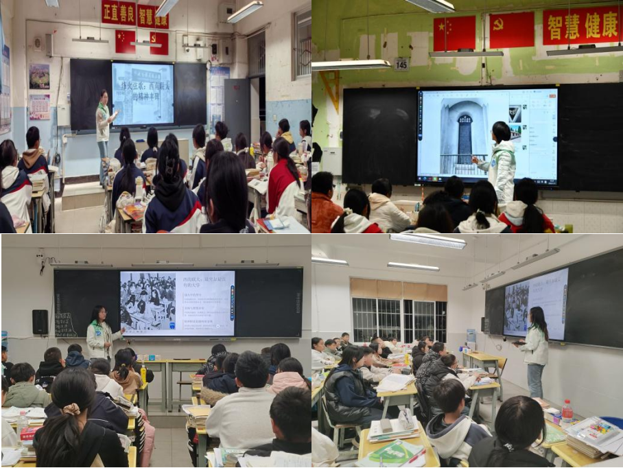 支教活动不仅传递知识,更注重文化浸润与精神引领。西南联大的故事在课堂上徐徐展开,志愿者以 “烽火中的学术殿堂”为主题,讲述联大师生在战火纷飞中辗转迁徙、茅草屋中苦读、防空洞旁授课的峥嵘岁月。从华罗庚、陈省身等大师的治学精神,到“刚毅坚卓”的校训传承,一个个鲜活的故事让同学们深受触动,真切体会到中华儿女在困境中不屈不挠的精神力量。