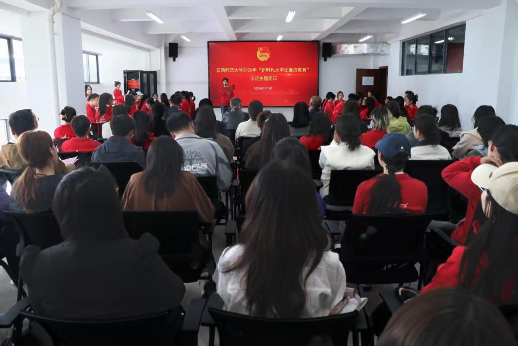 为加强和改进我校青年大学生廉洁教育,将廉洁要求融入学生成长成才的全过程,引导广大青年学子扣好人生“第一粒扣子”,厚植廉洁底色、增强廉洁意识、培养廉洁品质,努力成长为堪当民族复兴重任的时代新人,2026年3月19日下午,云南师范大学“新时代大学生廉洁教育”示范主题团日活动在呈贡校区东区学生实训中心南310室举行。