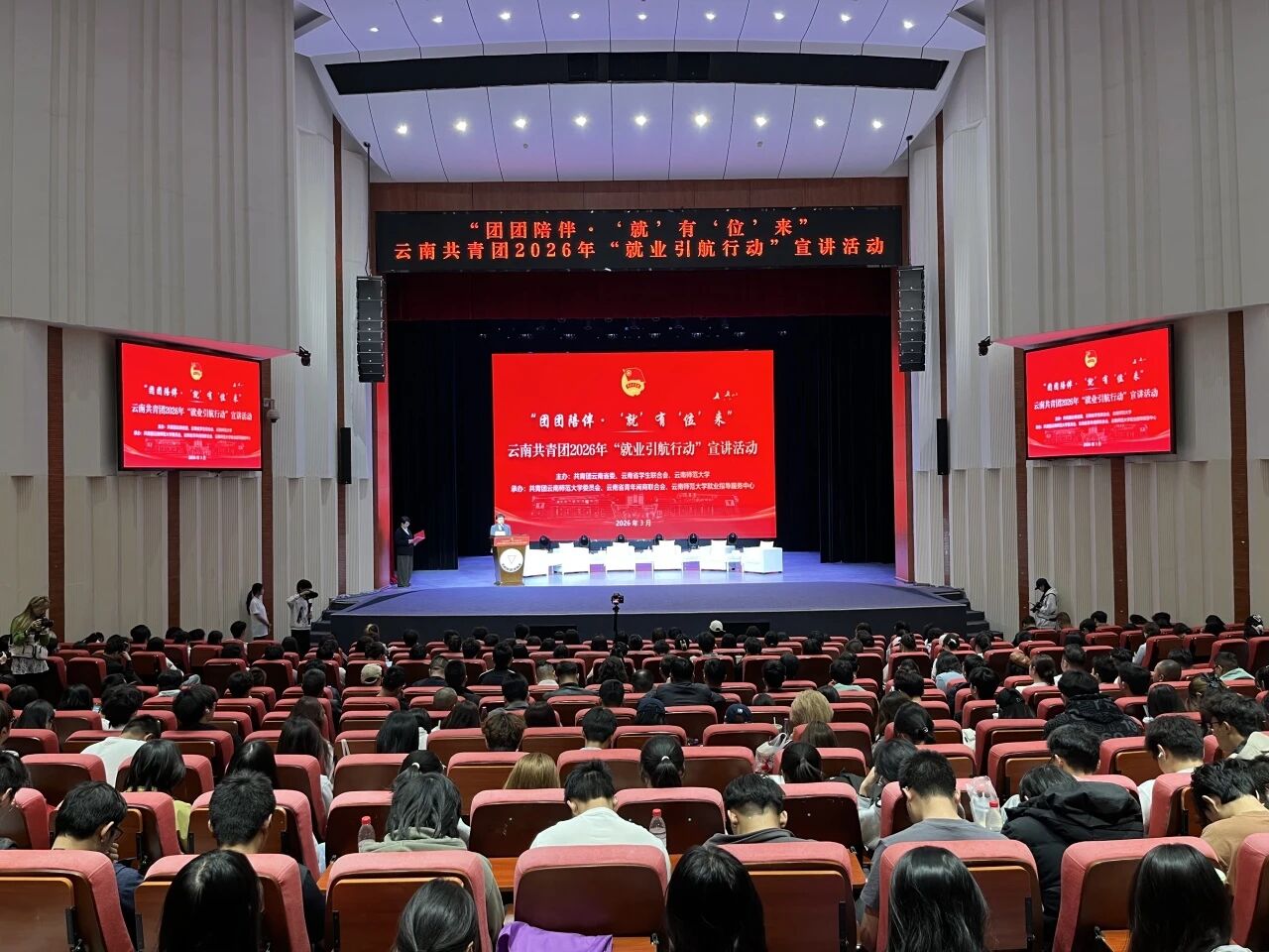 为深入贯彻党中央、国务院关于“稳就业”“保就业”的决策部署,积极落实团中央“团团陪伴·‘就’有‘位’来”就业引航行动,切实提升青年大学生就业创业能力,搭建校企协同育人平台,助力毕业生高质量就业创业,2026年3月27日下午,由共青团云南省委、云南省学生联合会、云南师范大学主办,共青团云南师范大学委员会、云南省青年闽商联合会、云南师范大学就业指导服务中心承办的“团团陪伴·‘就’有‘位’来”就业引航行动专题座谈会与主题宣讲活动在我校呈贡校区顺利举行。